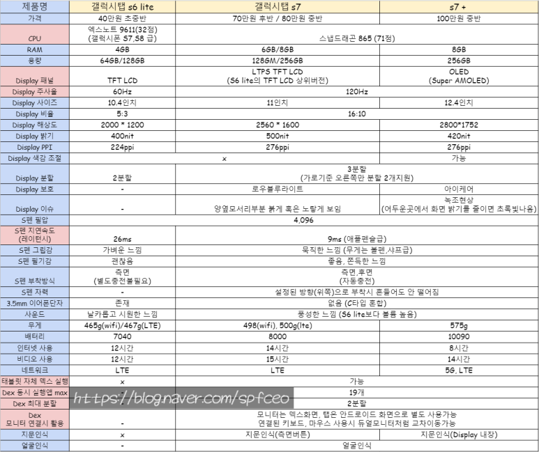 [한방에 비교] 갤럭시탭 S6 lite, 갤럭시탭 S7, 갤럭시탭 S7+ 중 어떤 걸 골라야할까? (LCD와 OLED 차이점?)