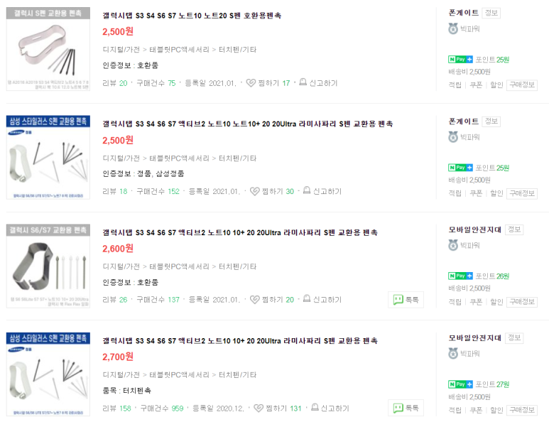 3. 온라인에서 저렴하게 S7, S7+ 정품 펜촉 구매하는 방법