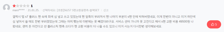 펜촉이 부서져서 S펜 자체를 49500원주고 교환을 하는 경우도 발생하는 것 같아요