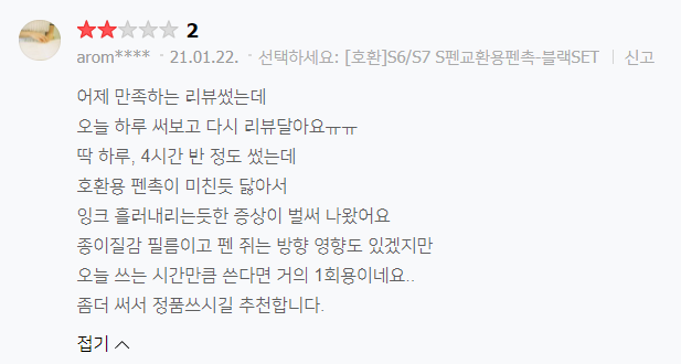하지만 리뷰를 보면 대부분 정품이 아닌 저렴한 호환용 펜촉을 구매하는 경우가 많았죠.